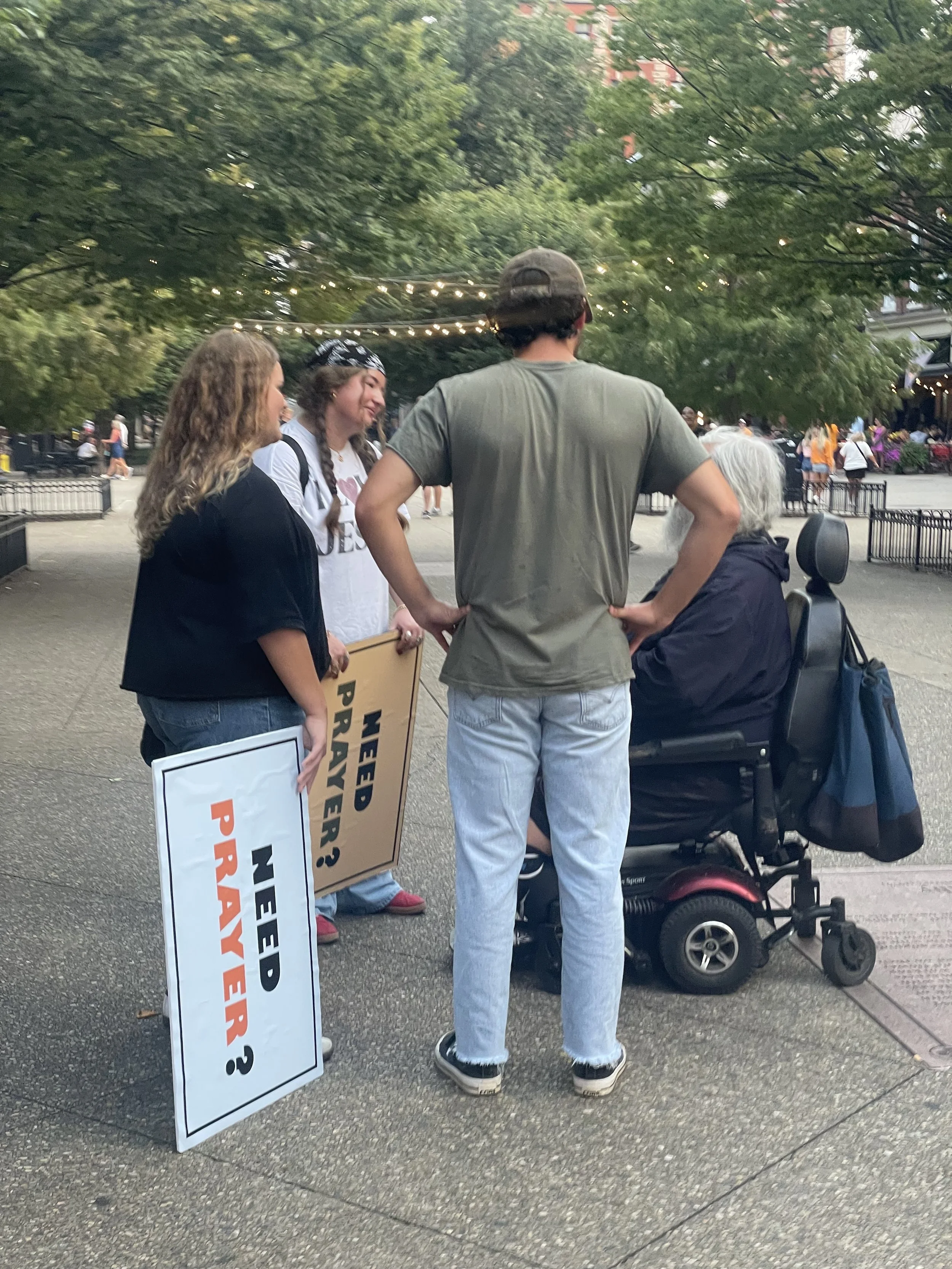 We bring the Gospel to everyday places—parks, businesses, sidewalks, city blocks, restaurants—through bold witness, healing prayer, prophetic ministry, and Spirit-led conversations that lead people to Jesus.